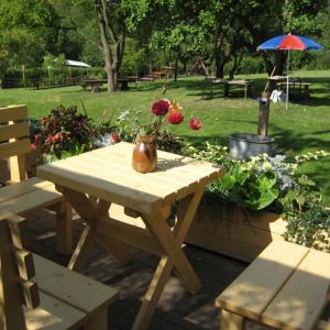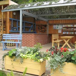 Unser Rastplatz im Grünen ist teilweise überdacht, so dass auch ein kleiner Regenguss keine Rolle spielt. Trotzdem sitzt man direkt im Freien, in der herrlichen Natur und doch in einem geschlossenen Areal.